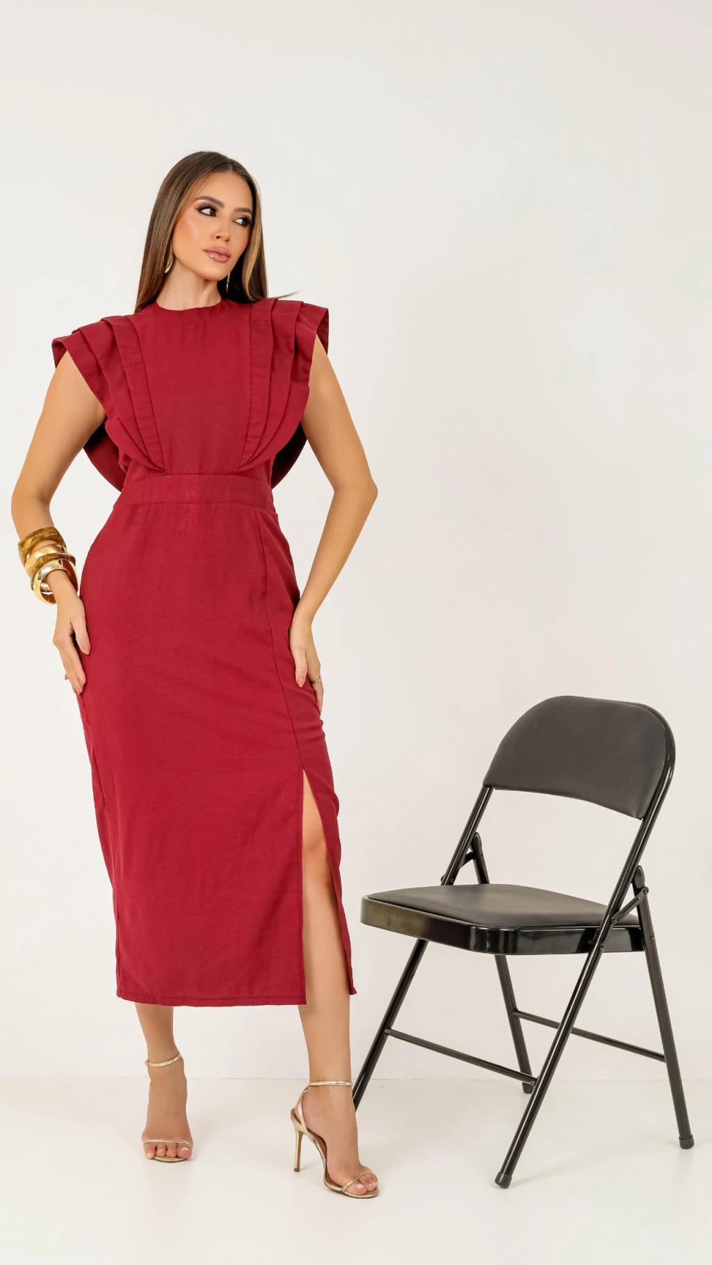 Vestido Ariel é um verdadeiro charme e elegância. São muitos detalhes diferenciados. Peça extremamente sofisticada. Detalhes nas mangas com 3 babados horizontal. com fechamento em zíper nas costas, e uma fenda frontal super charmosa.