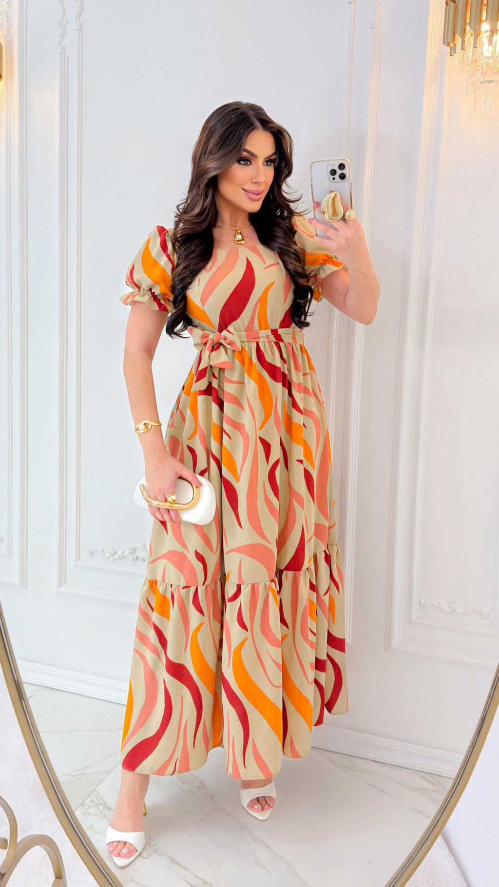 Vestido longo , classico e atemporal, elegante e chique, cheio de feminilidade permite ser usado em várias ocasiões. Forrados. Possui elástico na cintura para ajuste e modelagem e um melhor caimento. Manguinhas estruturadas. Faixa de uso opcional.