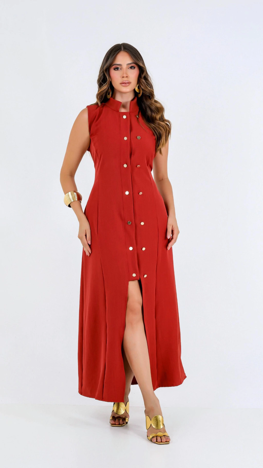 Elegante e moderno, esse vestido longo em tecido Alfaiataria Yvon é a peça perfeita para quem busca sofisticação e versatilidade em uma única escolha.